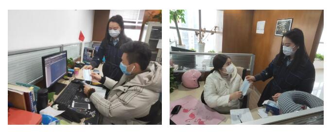 各支部书记带领党员每天对办公区域完成两次清洁和消毒,坚持每天为员工测量两次体温,并做好登记,时刻关注员工身体状态;每天将防护口罩、消毒酒精、洗手液等一一送到员工手中;每天坚持通过公司微信公众号、公司交流群等做好防护安全宣传,保证人员的绝对安全。